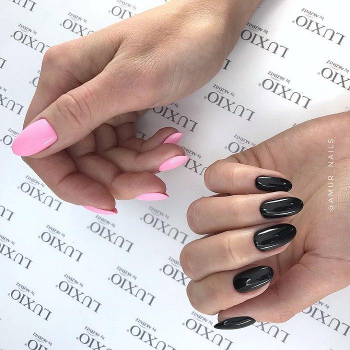 Так же розовый маникюр с легкостью сочетается с большой палитрой оттенков начиная от пастельных и светлых и заканчивая темными оттенками.