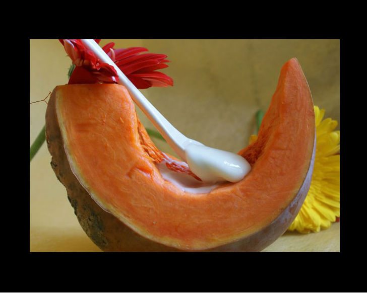 1 столовую ложку творога разотрите с 2-мя столовыми ложками свежего тыквенного сока. Такая маска хорошо увлажняет сухую кожу.