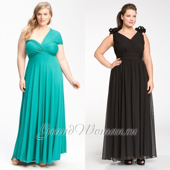 Если блистать в изысканном обществе, так в длинном вечернем платье. Такой наряд украсит любую девушку. Длинные до пола одежды вытягивают зрительно силуэт, делают его величественным. А модные фасоны платьев для полных женщин порадуют свои разнообразием.