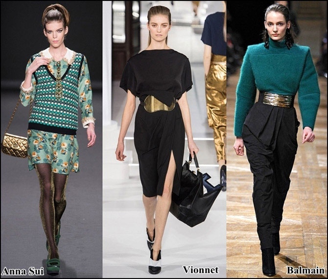 6. В том случае, если вы не питаете особой любви к золотым оттенкам и с опасением относитесь к ярким и броским цветам в своём гардеробе, то отличным вариантом для вас станет приобретение не менее эффектных и стильных золотых аксессуаров. Ведь все мы прекрасно знаем о том, что одна небольшая деталь способна порой кардинально изменить целый образ. Вы можете смело использовать небольшие и кокетливые золотистые клатчи и сумочки, шарфы и платки, ремни и пояса.