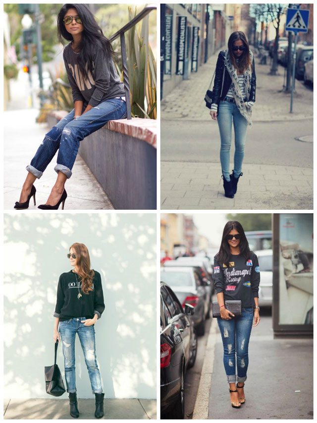 Похожий вариант – классические джинсы или джинсы бойфренда. Суть та же – хорошо сидящие джинсы и подходящая обувь формируют красивый силуэт и не отвлекают внимание от свитшота. Красота.
