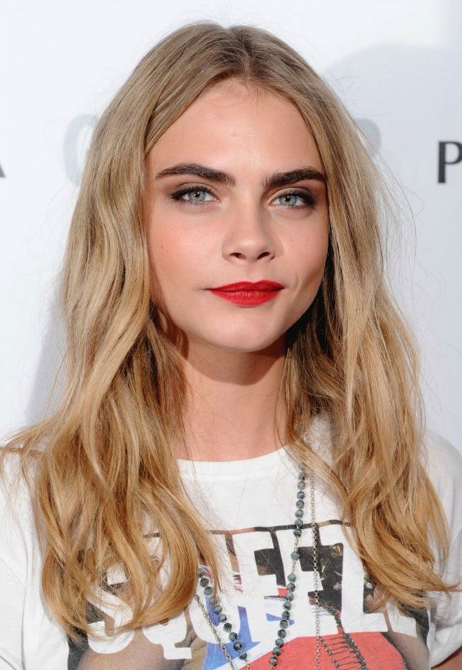 Красная помада великолепно сочетается с тёмными бровями. Сложно не вспомнить обладательницу самых крутых бровей-2013 Кару Делевинь. Несмотря на два активных акцента – широкие брови и яркие губы – британская модель выглядит свежо. Во многом благодаря небрежной укладке и неформальной белой футболке с принтом. Отличный пример, как и с чем носить красную помаду каждый день.