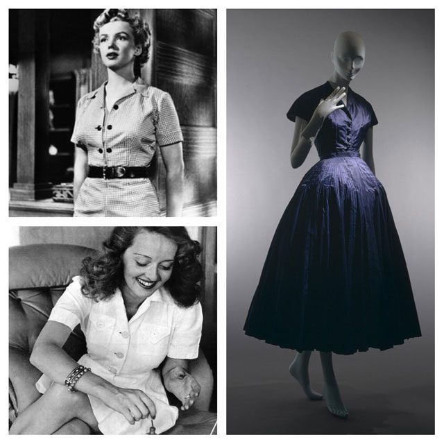 В американских каталогах готовой одежды платья-рубашки появились ещё до первой мировой войны. Тогда они по крою мало отличались от мужских рубах, и рекламировали их как незаменимый предмет одежды, подходящий для всех возрастов и жизненных ситуаций. Через несколько десятилетий платье выбралось на подиум, чтобы довольно быстро вернуться назад, на страницы каталогов и в массмаркет. Но сначала всё-таки был момент Золушки, а в роли феи выступил Кристиан Диор. Его коллекция «Нью Лук» стала долгожданным ответом на тяготы второй мировой, попыткой оставить пережитое позади.