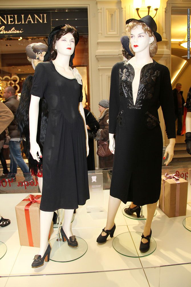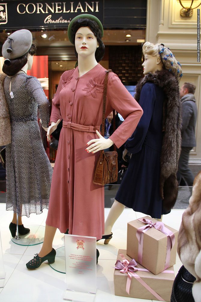 Даже в в годы жесточайшего террора 1930-х годов наши модницы умудрялись шить себе длинные платья, доставали меховые горжетки, носили модный волнистый перманент, красились в блондинок и выщипывали брови в подражание советским актрисам, которые в свою очередь поражали идеалам красоты, пропагандируемым западным кинематографом.