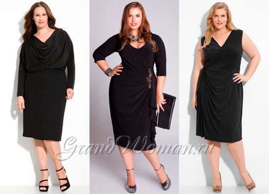 Черное платье – атрибут делового стиля в одеждеНе возможно не упомянуть о том, что черное платье – незаменимый наряд в деловом стиле одежды. Его сдержанные цвет и формы отлично вписываются любой дрес-код компании. При этом полные девушки смотрятся в таких платьях одновременно нарядно и элегантно.