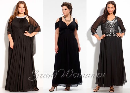 Платья с асимметричными формами сегодня на пике популярности. Черные платья для полных девушек также можно подобрать с необычными формами, которые по достоинству украсят таких красавиц.