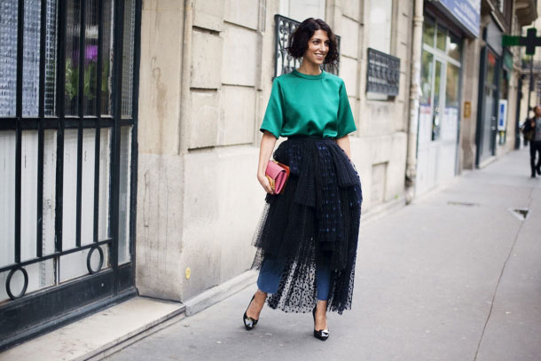 Если вы всё-таки решились примерить такой смелый образ в жизни, советую обратить внимание на Ясмин Сивелл, модного консультанта из Лондона. Она обзавелась пышной юбкой из сетки от Chloe и надела её поверх джинсов, сразу же попав в объективы street-style фотографов. Врождённое чувство стиля её не подвело, однако такой комплект не каждый решиться выгулять за пределы собственной квартиры.