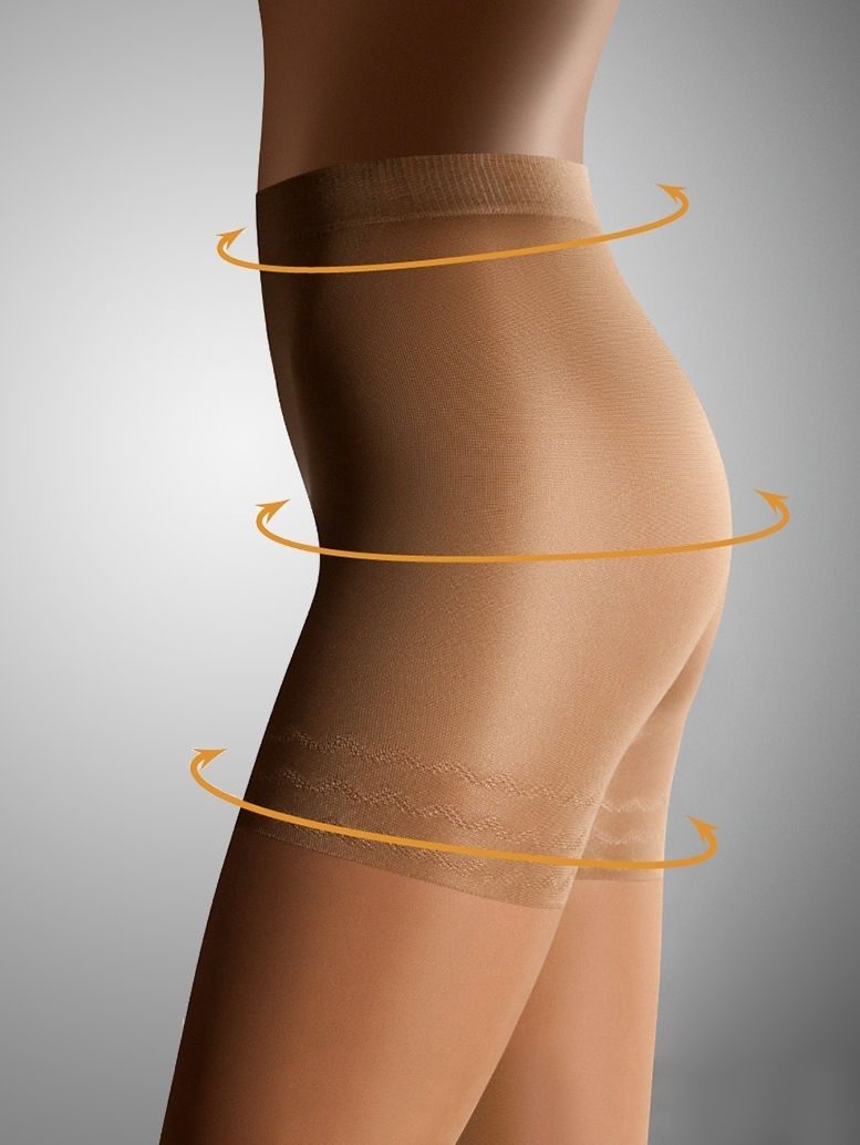 Утягивающие колготки имеют уплотненные трусики, они поддерживают живот и ягодицы, визуально корректируя проблемные зоны.
