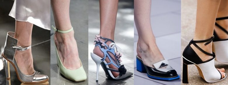 Очень модны в наступившем весенне-летнем сезоне будут мокасины на плоском квадратном каблуке, не утратят актуальности балетки, в моду вернуться туфли на низком каблуке с удлинёнными носками и открытыми пятками а-ля 80-е.