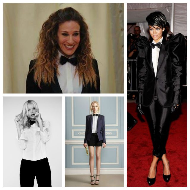 Одним из самых частых случаев, когда женщина прибегает к бабочке – это имитация мужского дресс-кода «black-tie», сочетания смокинга и белой рубашки. Икона-стиля, с которой мы выросли, Кэрри Брэдшоу надела смокинг от Dior на свадьбу своего лучшего друга. Это отличный вариант для формального мероприятия, когда не хочется надевать платье.