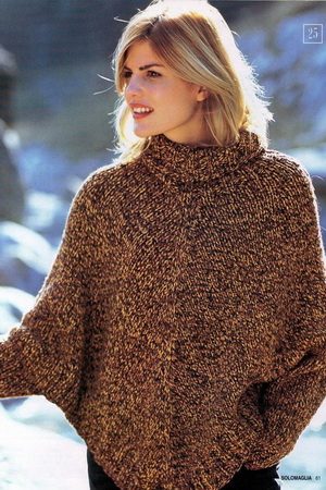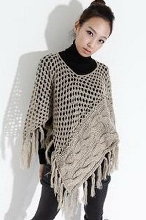 В отдельную категорию можно выделить пончо ручной вязки. Такое пончо можно купить, а можно связать самой, тогда оно точно станет неповторимым «шедевром».
