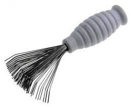 — На расческе не должно оставаться выпавших волос, регулярно удаляйте их. Очистить щетку от застрявших в ней волос можно с помощью другой расчески или зубочистки. Также существуют специальные щётки для очистки расчёсок (см. фото).