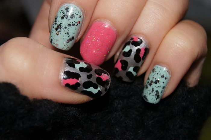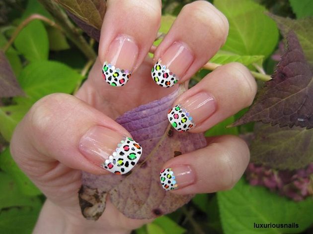 Во-первых, он вполне уместен как на коротких, так и на длинных ногтях. Во-вторых, вы можете экспериментировать с цветовой гаммой, выбирая даже не совсем привычные природные оттенки. В ногтевой дизайн всегда можно добавить креативности. В-третьих, частота рисунка также может быть разной. В-четвертых, рисунком может быть покрыта вся ногтевая пластина или же выбран леопардовый френч.