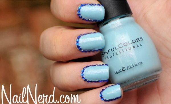 Если же появится желание создать нежный образ, но неброские однотонные цвета применять не хочется, то можно на лаке пастельных оттенков создать кружевные изящные рисунки, используя при этом специальные трафареты или наклейки контрастных, более темных цветов. В качестве дополнения можно декорировать рисунок небольшими стразами. При этом необходимо следить за тем, что такого декора было в меру.