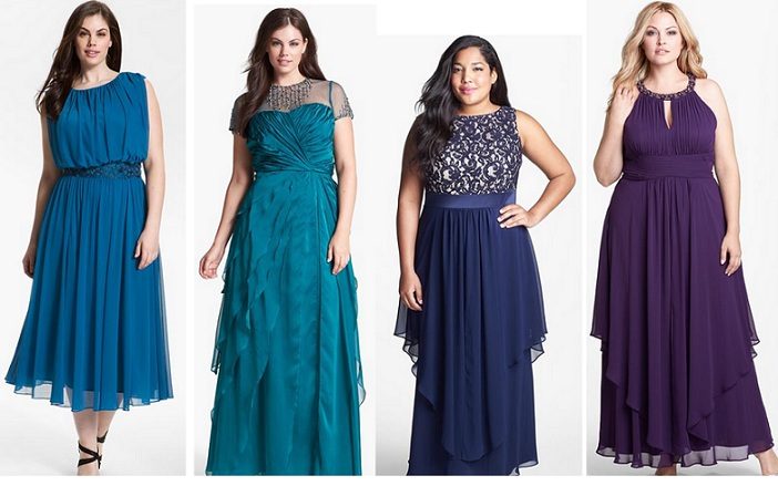 Длина вечерних платьев для полных женщин разнообразная: до колена, ниже колена, макси. Рукава разной длины и ширины.