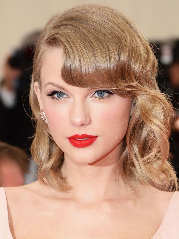 Тейлор может похвастаться большим опытом «творчества» с чёлкой: она умело укладывает её в ретро-стиле, убирает в пучок или демонстрирует природную густоту.