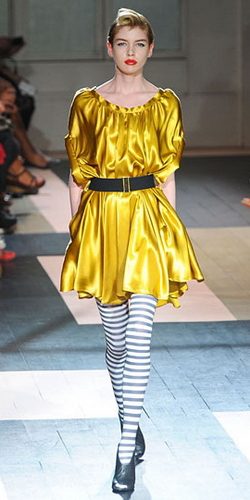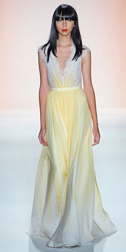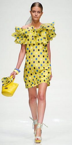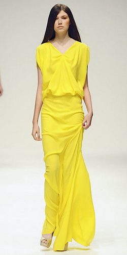 В основном, конечно же, это были желтые платья. На подиумах были представлены как монохромные модели, так и платья — цветовые фейерверки.