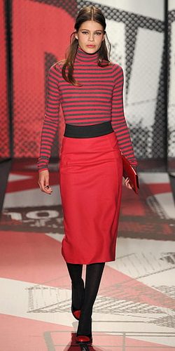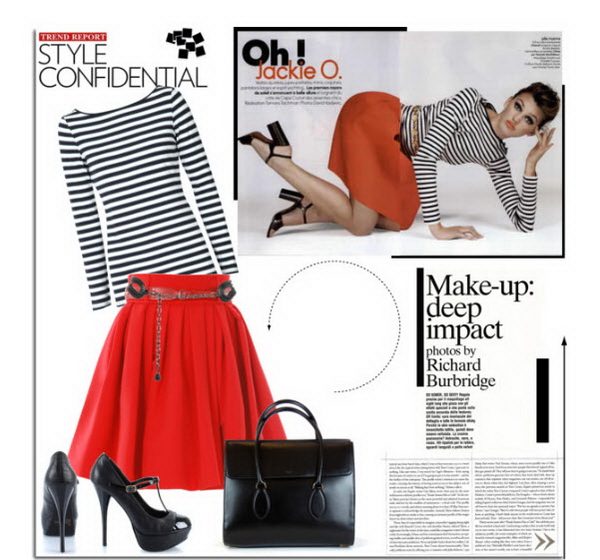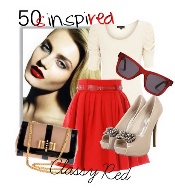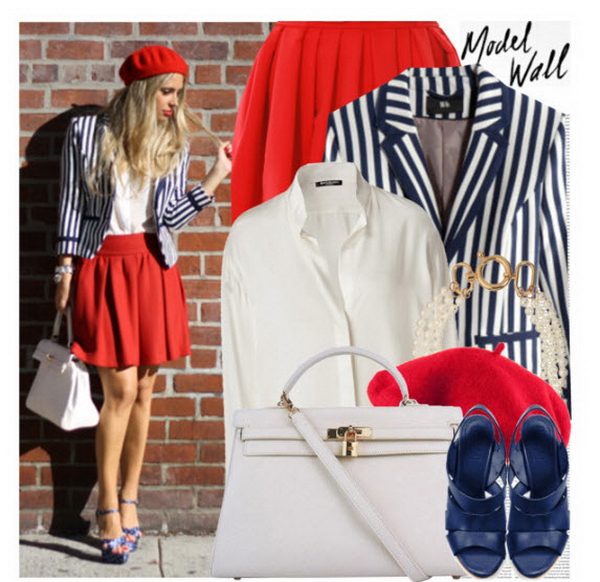 Еще один беспроигрышный вариант – красно-белый. Наряд из красной юбки с красно-белым, желательно полосатым, блузоном расскажет о безукоризненном вкусе, но при этом важно правильно подобрать фасон этих предметов гардероба.