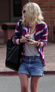 Вот тут переход от кардигана к майке, от майки к ремню, от ремня к шортам, плюс шорты подвернуты: