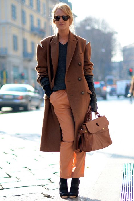Одного цвета должна быть не только одежда, но и колготки, и обувь, и сумка, и ремень. А вот по текстуре однотонные вещи могут быть абсолютно разными.
