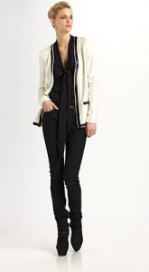— однобортные пиджаки и жакеты (чем больше пуговиц, тем сильнее эффект)