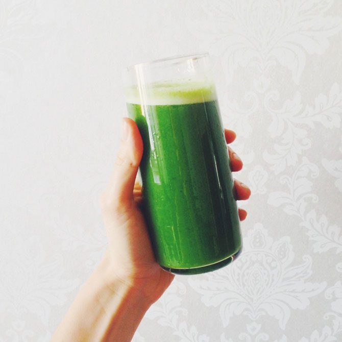 Моя вторая замена чашке кофе — ежедневный свежевыжатый сок из овощей и зелени. Или зелёный смузи, в котором вместо кофеина за бодрость отвечает хлорофилл. В отличие от кофе к сокам и смузи нет привыкания, нет ломки, головной боли и упадка сил, когда вы пару дней остаетесь без соковыжималки или блендера. Нет сока — окей, есть смузи. Нет и смузи — окей, можно съесть просто свежие фрукты или овощи.
