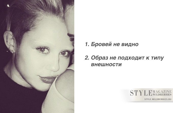 В этом варианте макияжа Майли просто избавилась от бровей, и этот эксперимент точно можно назвать неудачным!