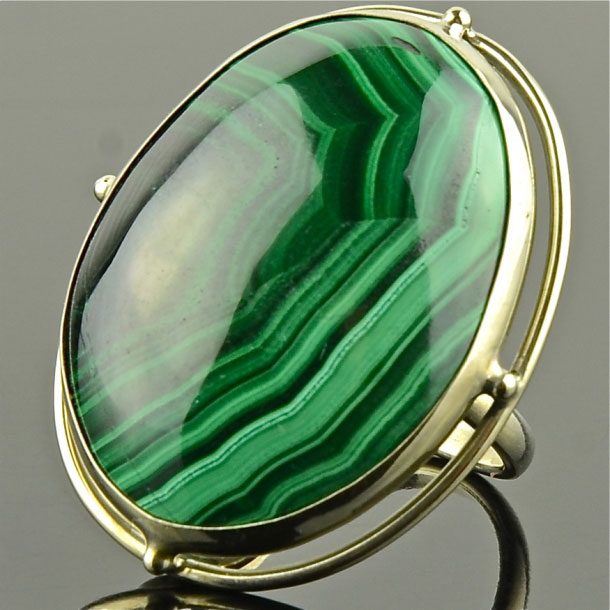 Малахитовое кольцо, новое, только что купленное, особая примета. Купил кольцо — нашел нового друга. Малахит очень быстро привыкает к хозяину, способен выполнять его просьбы, оберегает и манит к владельцу всех подряд. Нормальных. Ненормальных. Маньяков. Всяких. А также развивает ораторский и литературный дар, так что если вы любительница ходить по клубам, носите малахит, будете звездой. Малахит носят только в серебре, в других металлах он не работает. Малахит не терпит соседства красных и голубых камней.