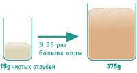 — отруби можно заваривать кипятком или есть сухими. Во втором случае их нужно запивать достаточным количеством воды, так как они способны сильно разбухать и впитывают жидкости в 25 раз больше своего объема;