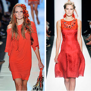 Рыжеволосые женщины с синими, зелёными или серыми глазами обычно имеют матово-белую кожу. Им больше подходят ткани мягкого красно-оранжевого или оранжевого с отделкой из зелёного или синего. Не рекомендуются оранжево-коричневые цвета, подчёркивающие цвет волос и кожи.