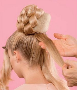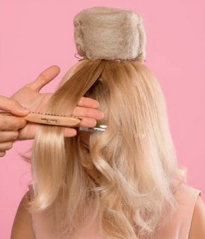 7. Для создания объемного силуэта в этой прическе используем два валика.