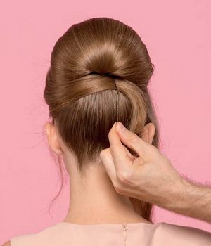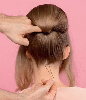 19. Оставшиеся концы волос укладываем сверху и закрепляем невидимками.