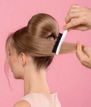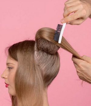 9. Все волосы из хвоста щеткой зачесываем на валик.