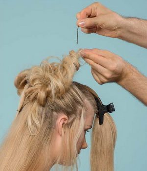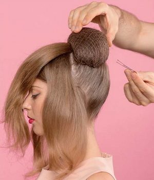 17. Прядь тщательно фиксируем невидимками под валиком.