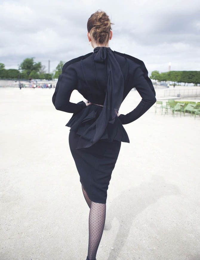 Покажите немного тела – с помощью V-образного декольте. Этот простой приём поможет визуально вытянуть верхнюю часть туловища и удлинить шею. Чем больше кожи вы обнажите между подбородком и грудью (в пределах разумного), тем более элегантно будут выглядеть пропорции.