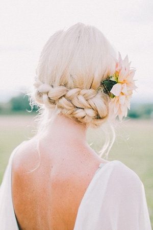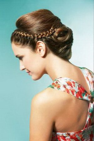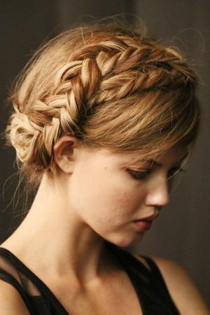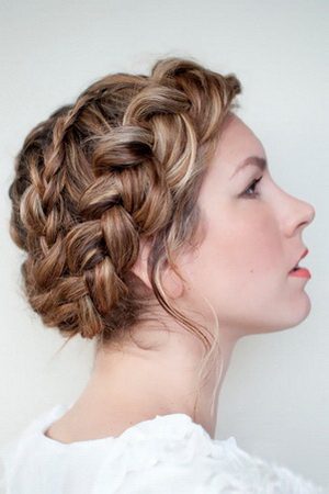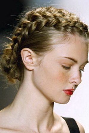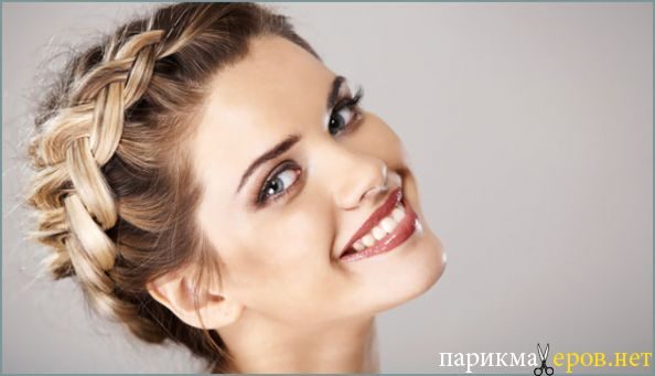 Шаг первый — делаем чёткий пробор, который должен проходить посередине макушки. Затем начинаем плести косу, используя стандартные три прядки с каждой стороны. Коса должна как обруч огибать голову. По мере плетения шпилькой аккуратно приподнимают заплетенные пряди. Этот приём позволяет создать видимость дополнительного объёма. Коса становится визуально толще. Концы волос советуем оформить в виде хвоста, перехватив его яркой лентой или резинкой.