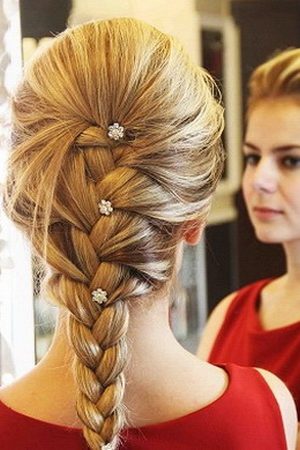 Этот тип плетения подходит обладательницам очень густых и к тому же прямых от природы волос. Для начала необходимо будет зачесать волосы назад. После чего, поэтапно отделяя тонкие прядки (толщина каждой не больше двух с половиной сантиметров) справа и слева начинаем плетение. Важно, что при накладывании пряди одна на другую берётся лишь её часть. Таким образом, получается коса, внешний вид которой напоминает рыбий хвост.