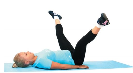 Исходное положение: лежа на спине недалеко от стены. Согните ноги и в течение 4–5 секунд с усилием упирайтесь в стену. Сделайте 5–6 повторений упражнения с интервалом в 20–30 секунд.