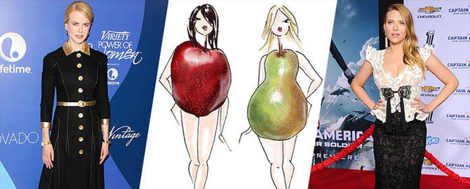 «Яблоко»: обладательницы этого типа фигуры отличаются сравнительно худыми бёдрами, небольшим бюстом и довольно объёмным животом, который по обхвату может даже несколько превышать другие части корпуса. К числу «яблочных» барышень относятся Мэрайя Кэрри и Кейт Уинслет.