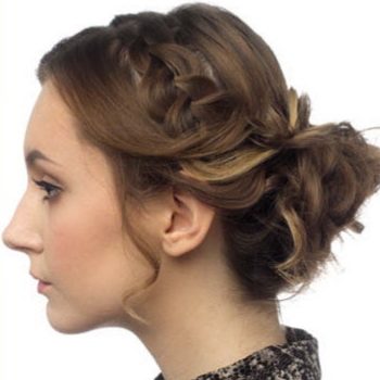 5. Оберните маленькие косички вокруг пучка, закрепите их шпильками.