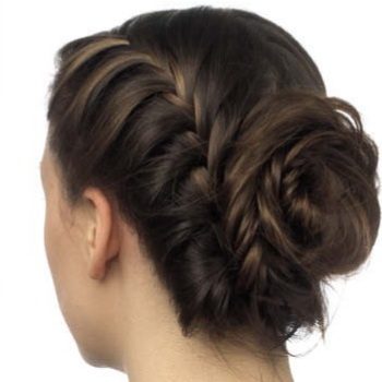 Изысканная и очень романтичная прическа «роза» из волос только на первый взгляд может показаться сложной. На самом деле в ее основе — простые косы в три пряди. Посмотрите прическу «Роза» из волос на фото, представленных на этой странице: