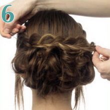 6. Сверните косу по кругу и выложите на затылке, закрепите шпильками.