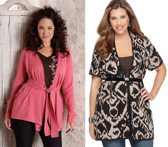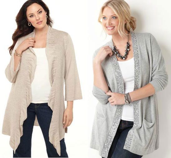 • Избегайте кардиганов на молнии, с накладными карманами и мешковатых фасонов. Все это табу для пышных дам.