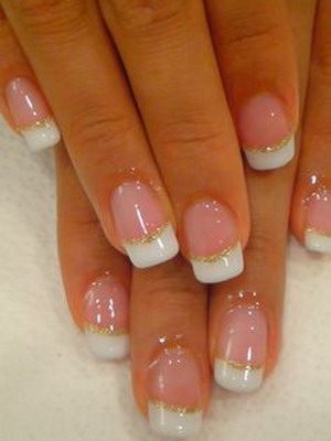 Для того, чтобы создать этот дизайн ногтей на каждый день, понадобятся прозрачный и белый лак для ногтей, а также золотой лак или косметический карандаш для ногтей золотого цвета.