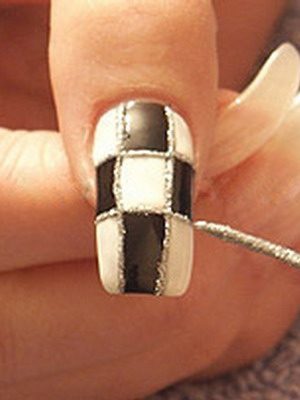 4. Поверх черного лака нанести серебряный блеск, чтобы он не скрывал черные линии. Дождаться высыхания блеска.