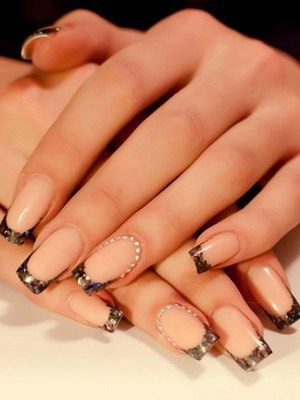 Самым популярным является французский маникюр и его различные вариации, т. е. привычный френч можно украсить блестящими полосками, серебряной фольгой, кружевом, небольшими стразами, блестками.