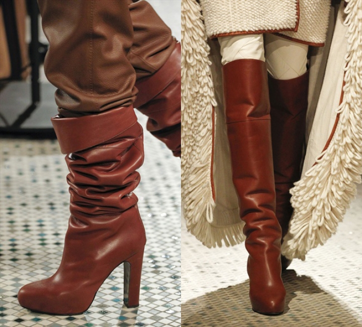 Коричневые сапоги и платья