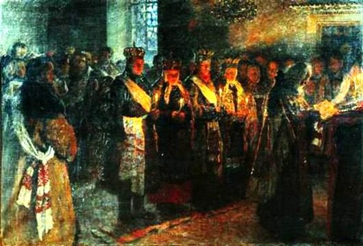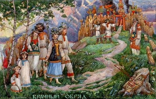 О свадьбах языческой Руси известно крайне мало. По мнению русского историка Н.М. Карамзина, древние славяне обычно покупали себе жен и как такового свадебного обряда не знали.