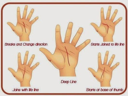Эти линии находятся между линией ума и линей сердца. Они показывают те силы, которым каждому в жизни предстоит противостоять.