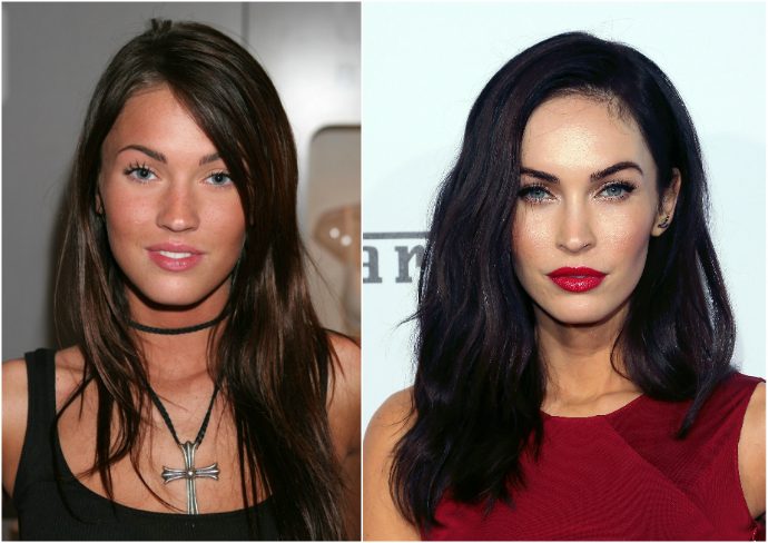 Самые очевидные изменения во внешности можно проследить у Меган Фокс. При взгляде на эти две фотографии складывается впечатление, что на них два абсолютно разных человека. Слева молодая симпатичная девчонка с веснушками, а справа – роковая красавица с вызывающим прищуром, точеными скулами и аккуратным носом. Все эти внешние метаморфозы произошли благодаря хирургическому вмешательству, и Меган никогда этого не скрывала.